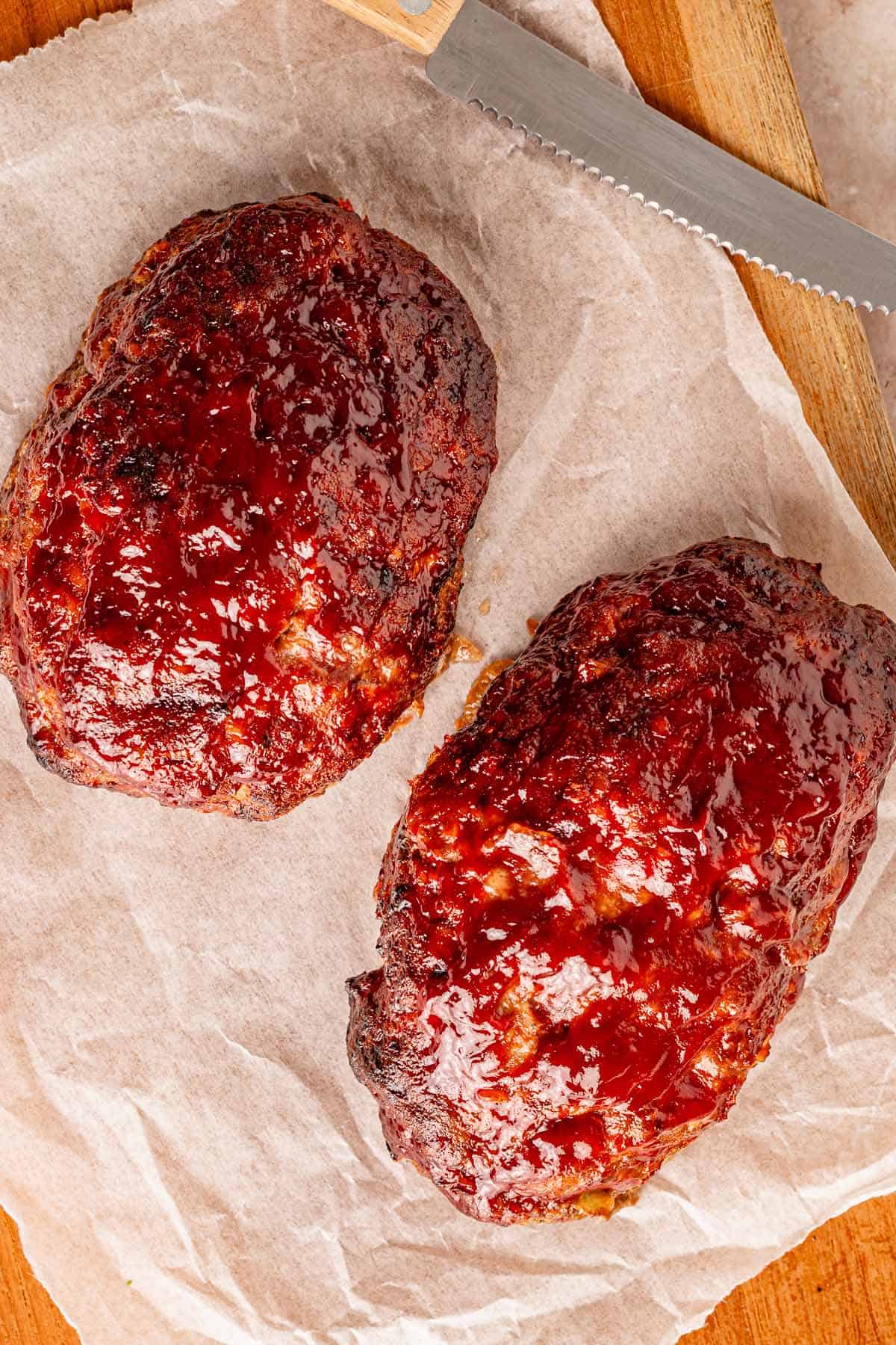 - Add glaze: Mix ketchup and BBQ sauce. Spread on top generously.