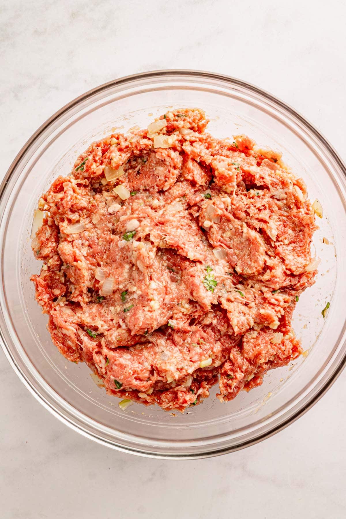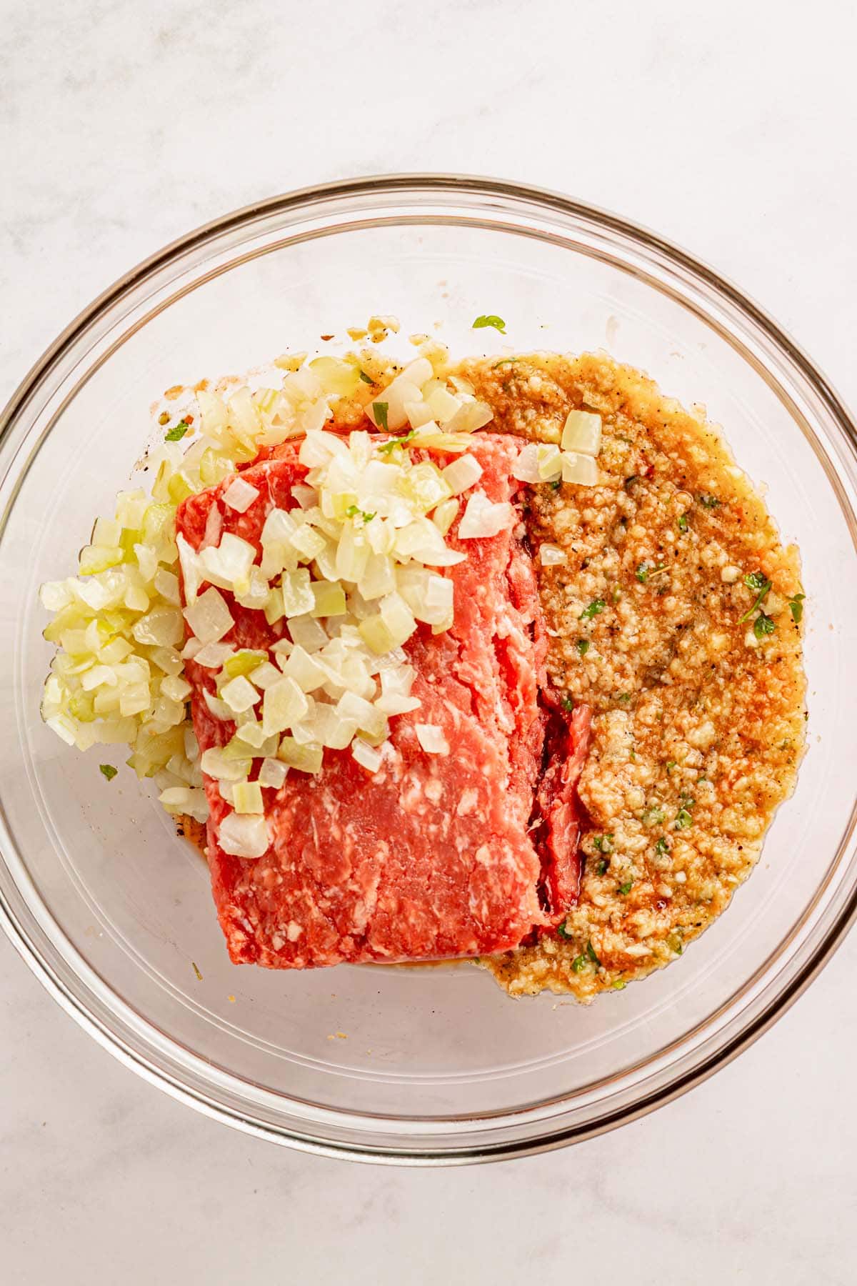 - Add beef: Add ground beef and cooked onion. Mix gently until just combined. The mixture should feel soft but hold shape.