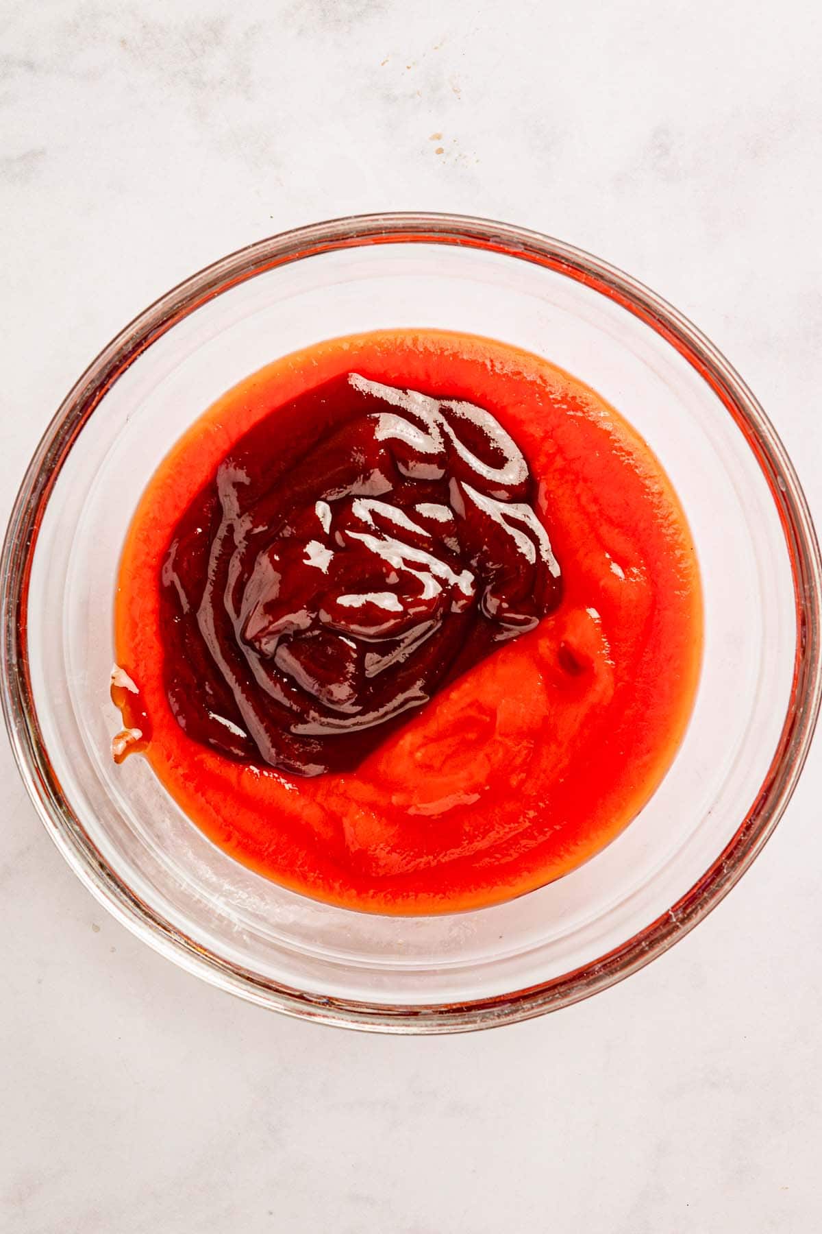- Mix ketchup and BBQ sauce and spread on top.¼ cup ketchup, ¼ cup BBQ sauce