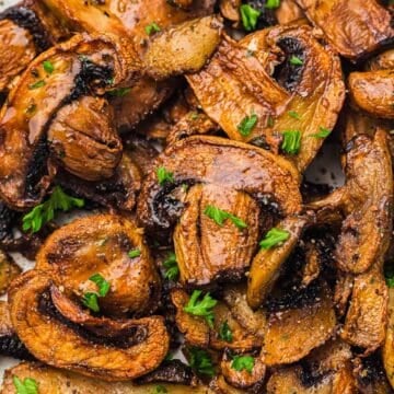 Air Fryer Mushrooms are the easiest way to make crispy, juicy garlic mushrooms in minutes.