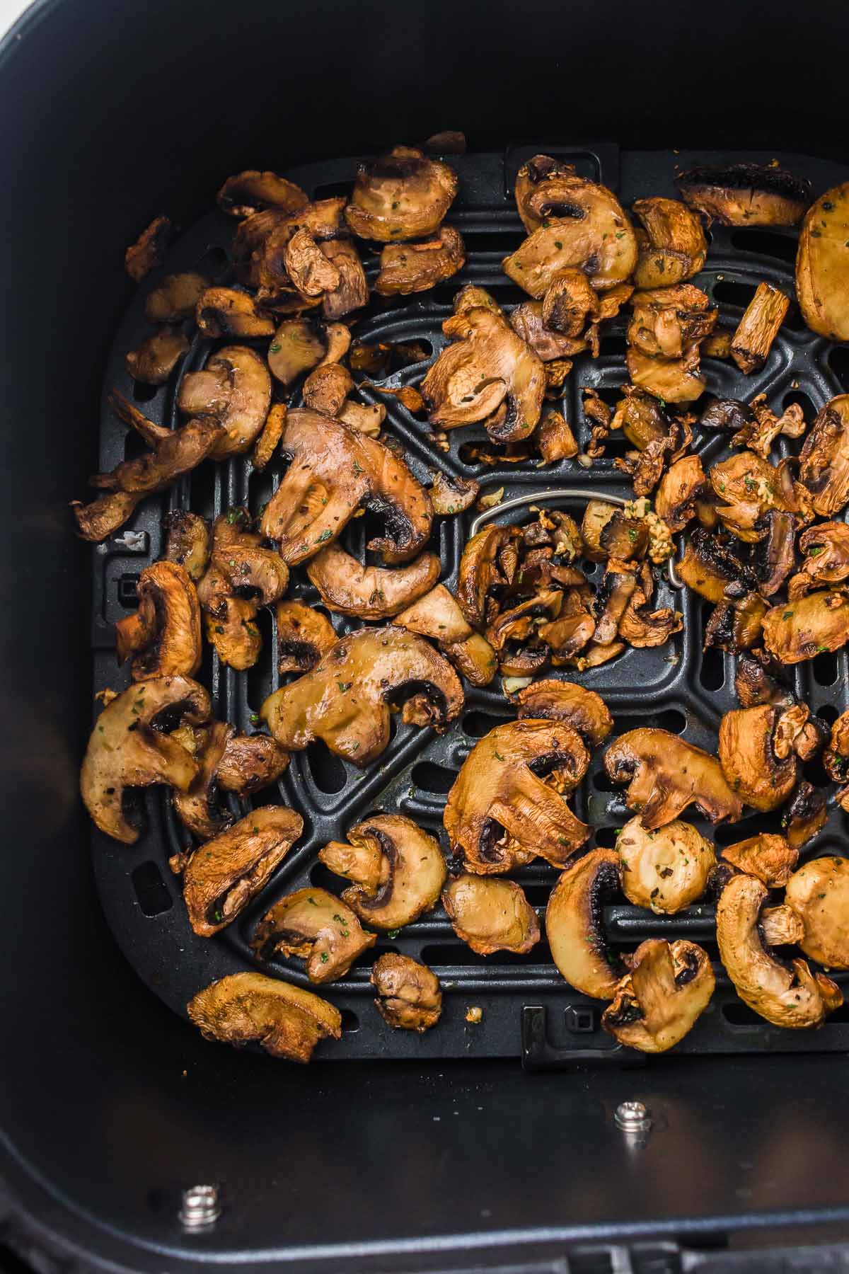 - Cook at 390°F for 7–9 minutes. Shake the basket halfway. You want golden edges and slightly shrunk mushrooms.