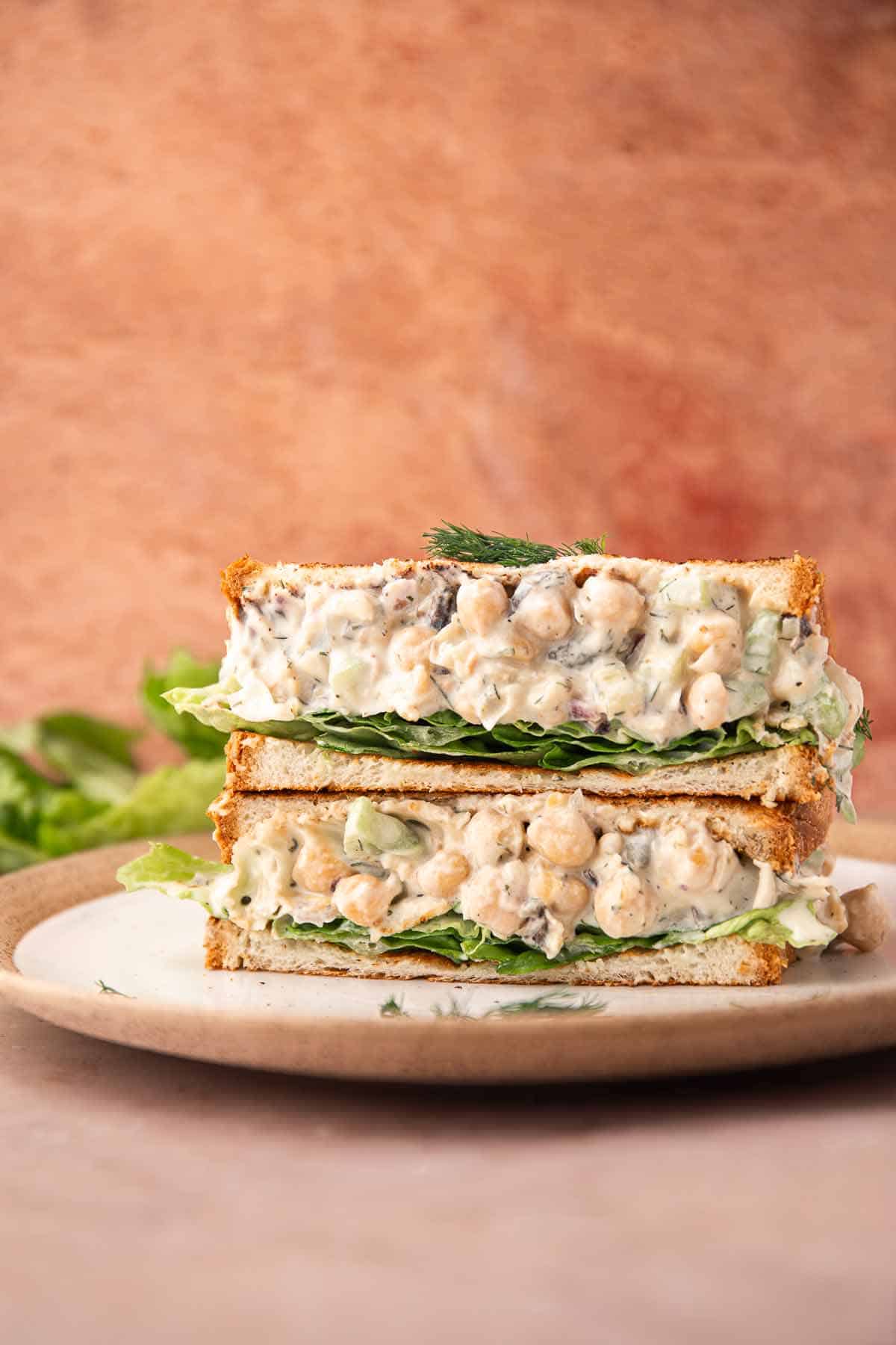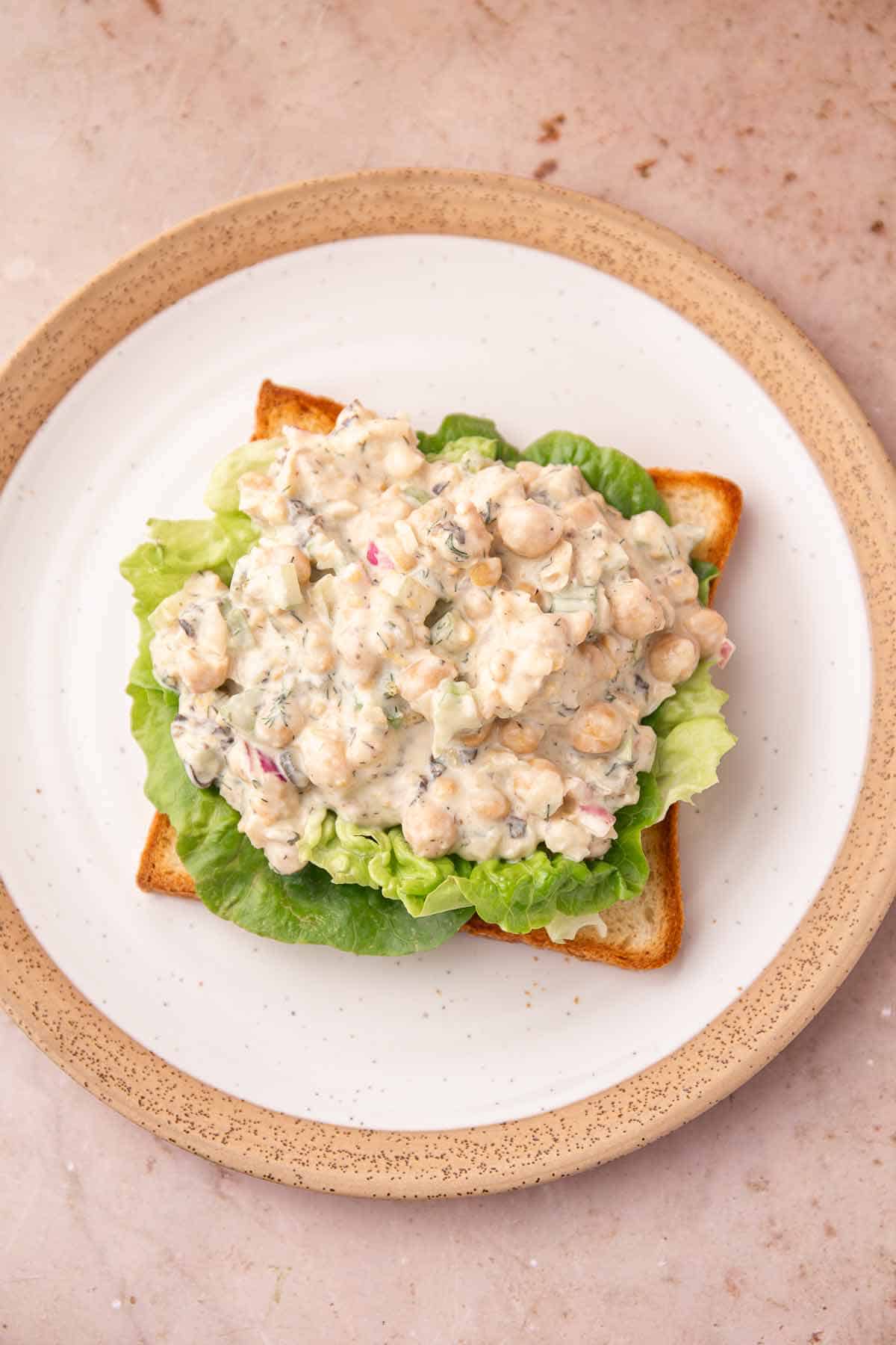• Serve: spread vegan butter on bread, add lettuce, then spoon the chickpea salad and close into sandwiches or serve on toast.