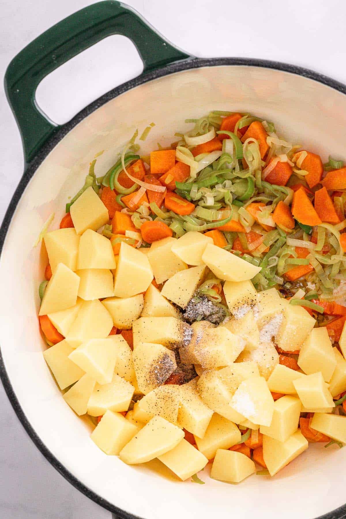 - Leek - Use both the white and light green parts. It gives a mild, slightly sweet onion flavor that works perfectly in this soup.