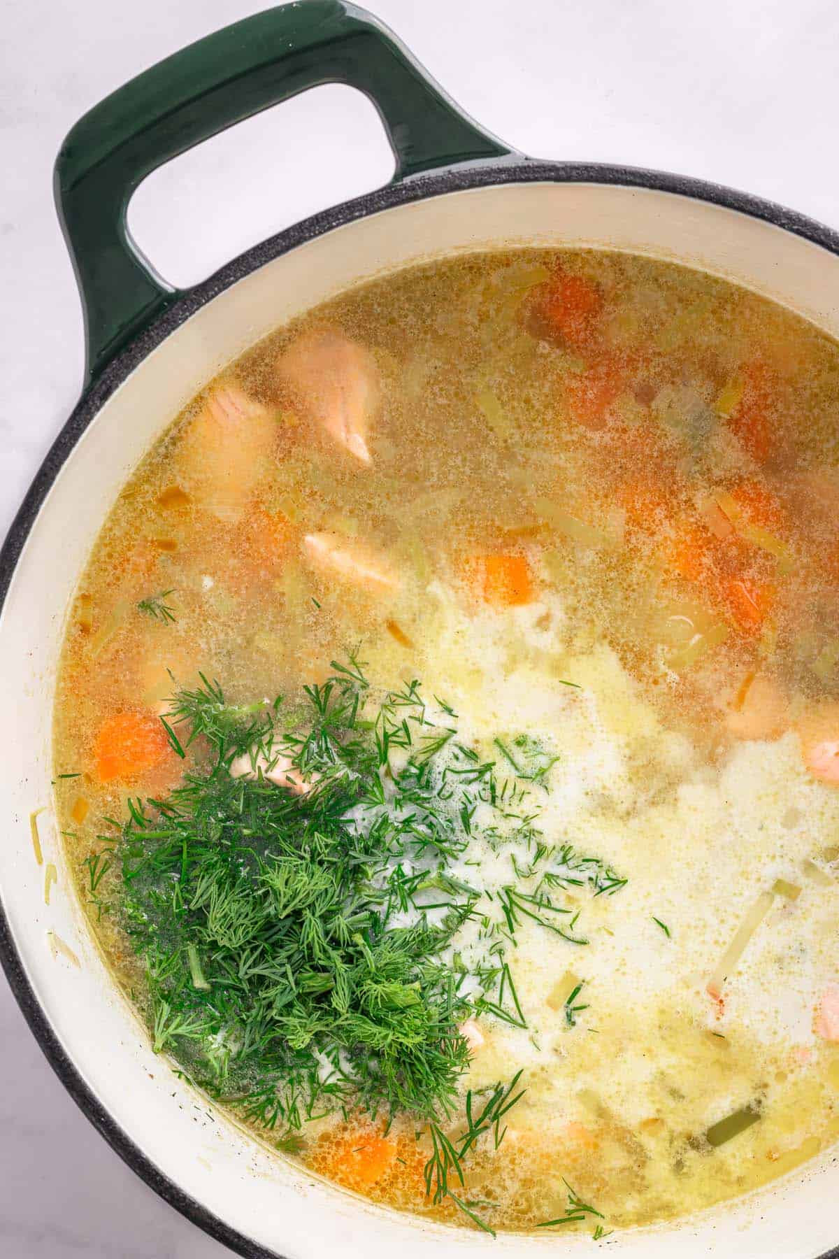- Add dill in two stages - Stir some into the soup and sprinkle extra on top when serving for a fresher flavor.