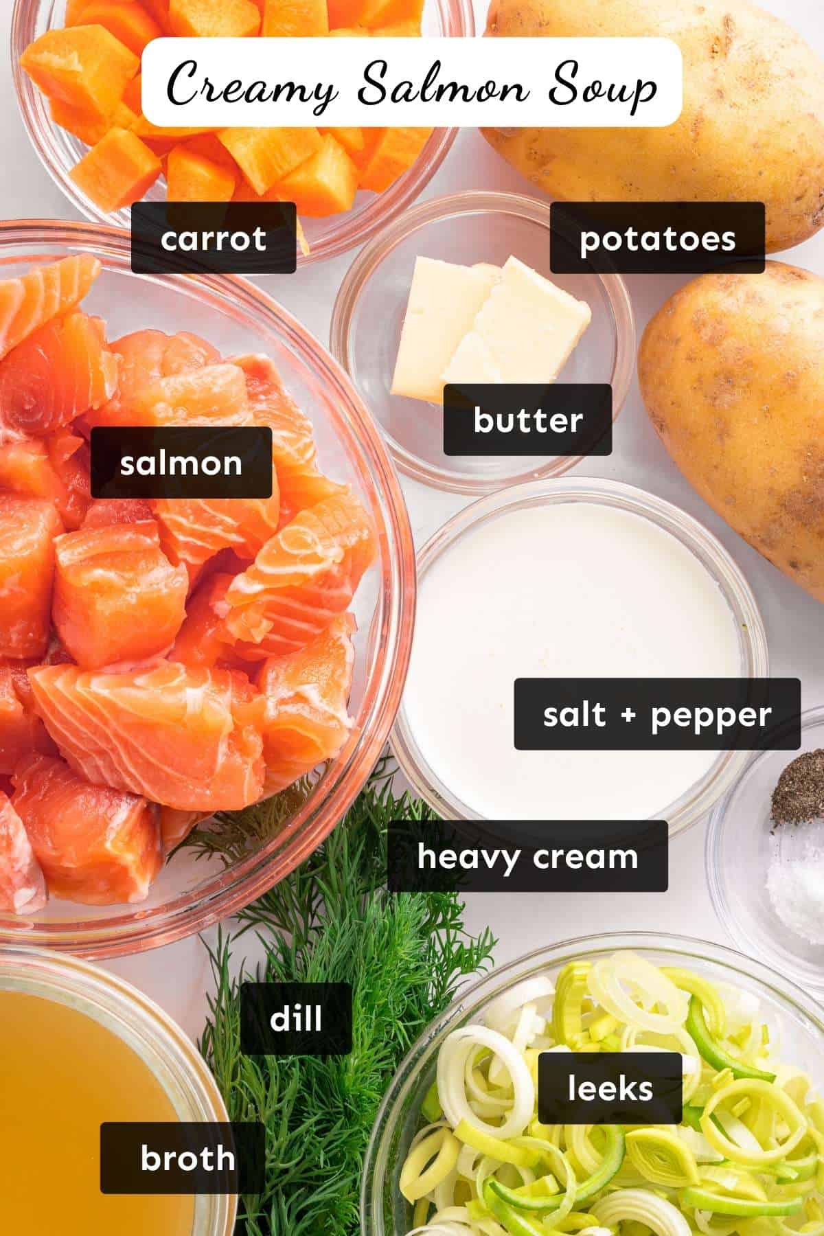 ♥ This isn't just a basic creamy soup. The timing is what makes it work. The vegetables are simmered until just tender, then the salmon is added at the end so it stays soft and flaky instead of dry. The cream and fresh dill finish the soup gently, keeping it rich but still light and fresh.