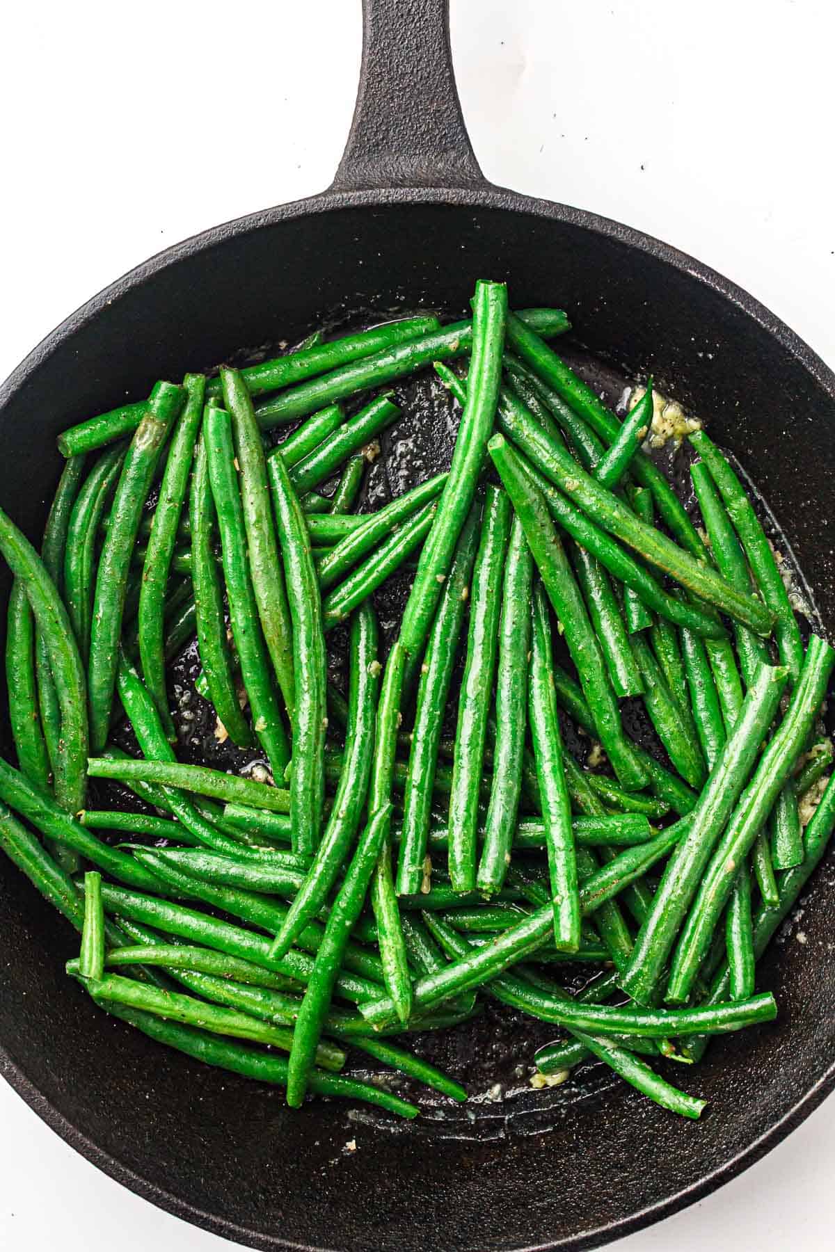 - Add green beans: Toss the blanched beans into the skillet.