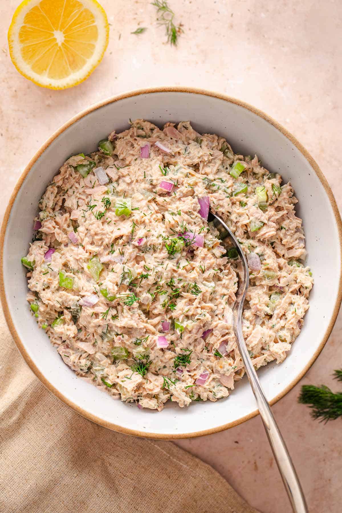 This healthy tuna salad is creamy, light, and made with no mayo - just Greek yogurt. It's quick, easy, and perfect for a high protein lunch or simple meal prep.