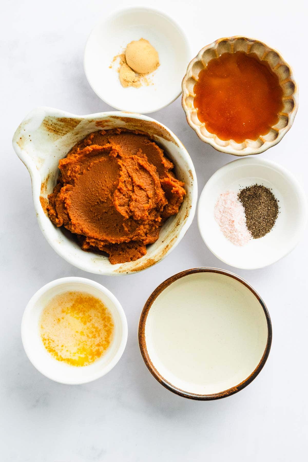 - Preheat oven to 400°F. Mix butter, miso paste, honey, rice vinegar, ginger, salt, and pepper until thick. Optional red pepper flakes.2 tablespoons softened butter, ½ cup white miso paste, 2 tablespoons honey or maple syrup, 1 tablespoon rice vinegar, ½ teaspoon ground ginger, ¾ teaspoon salt, ½ teaspoon ground black pepper, ½ teaspoon crushed red pepper flakes