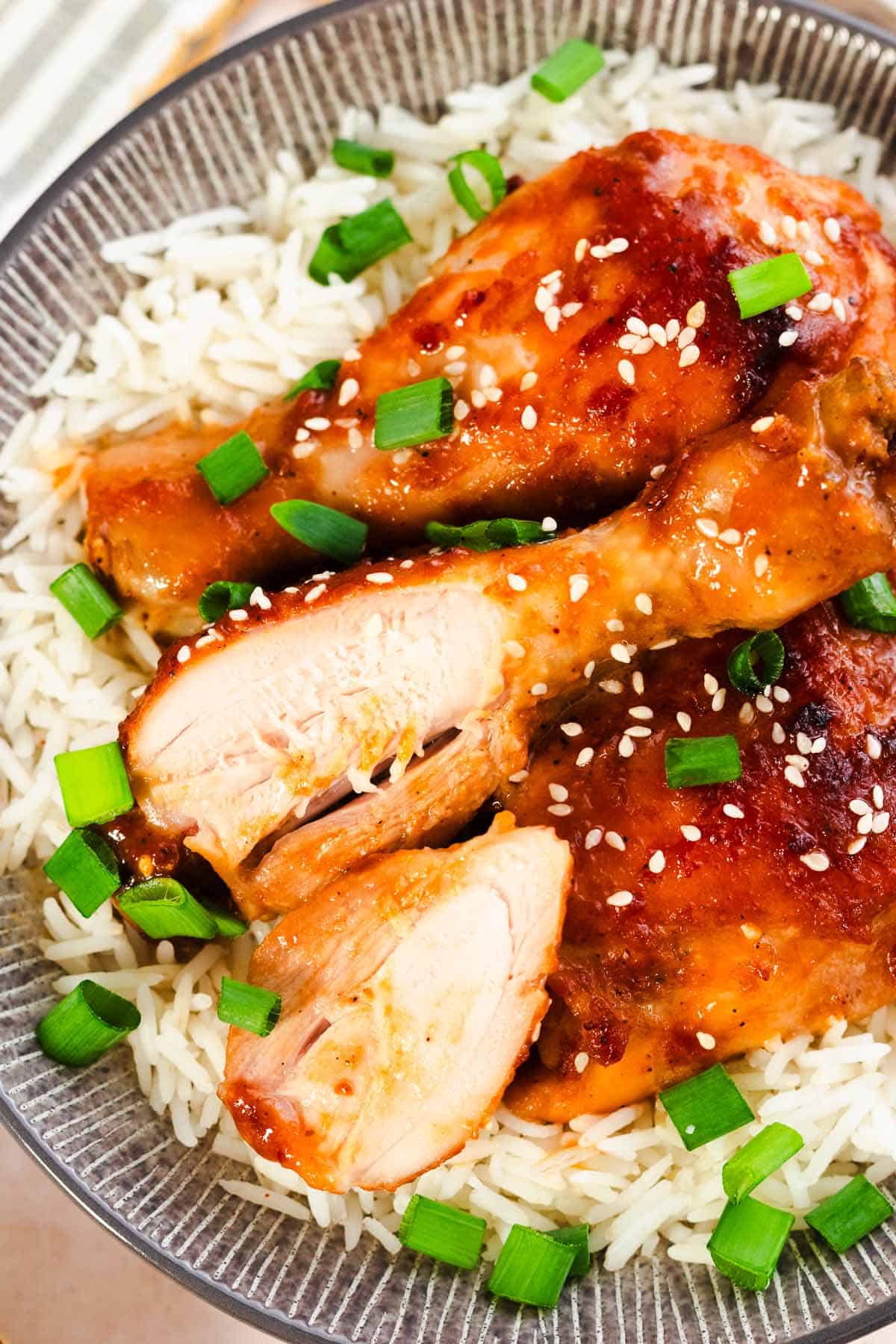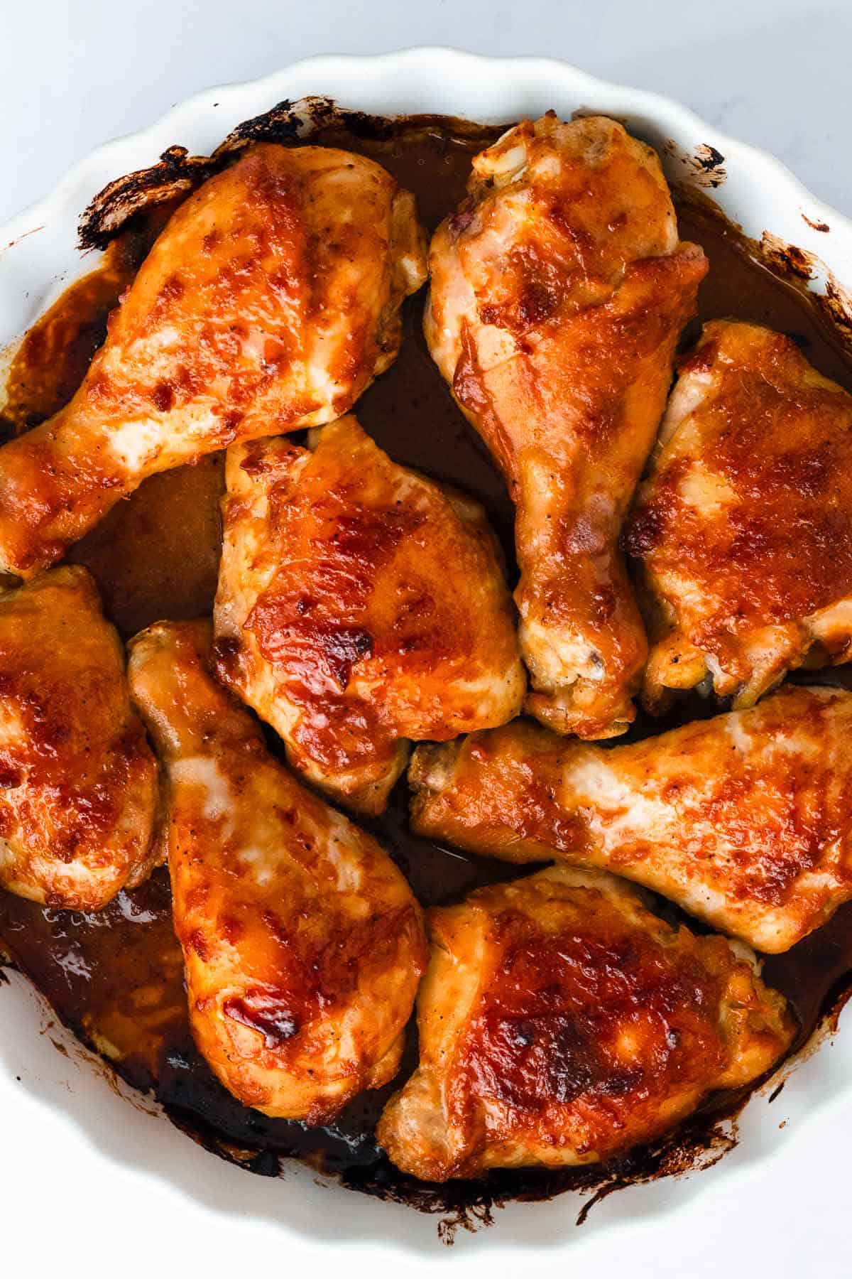 - Turn the chicken twice during baking. This helps the skin crisp evenly and keeps the glaze from pooling on one side.