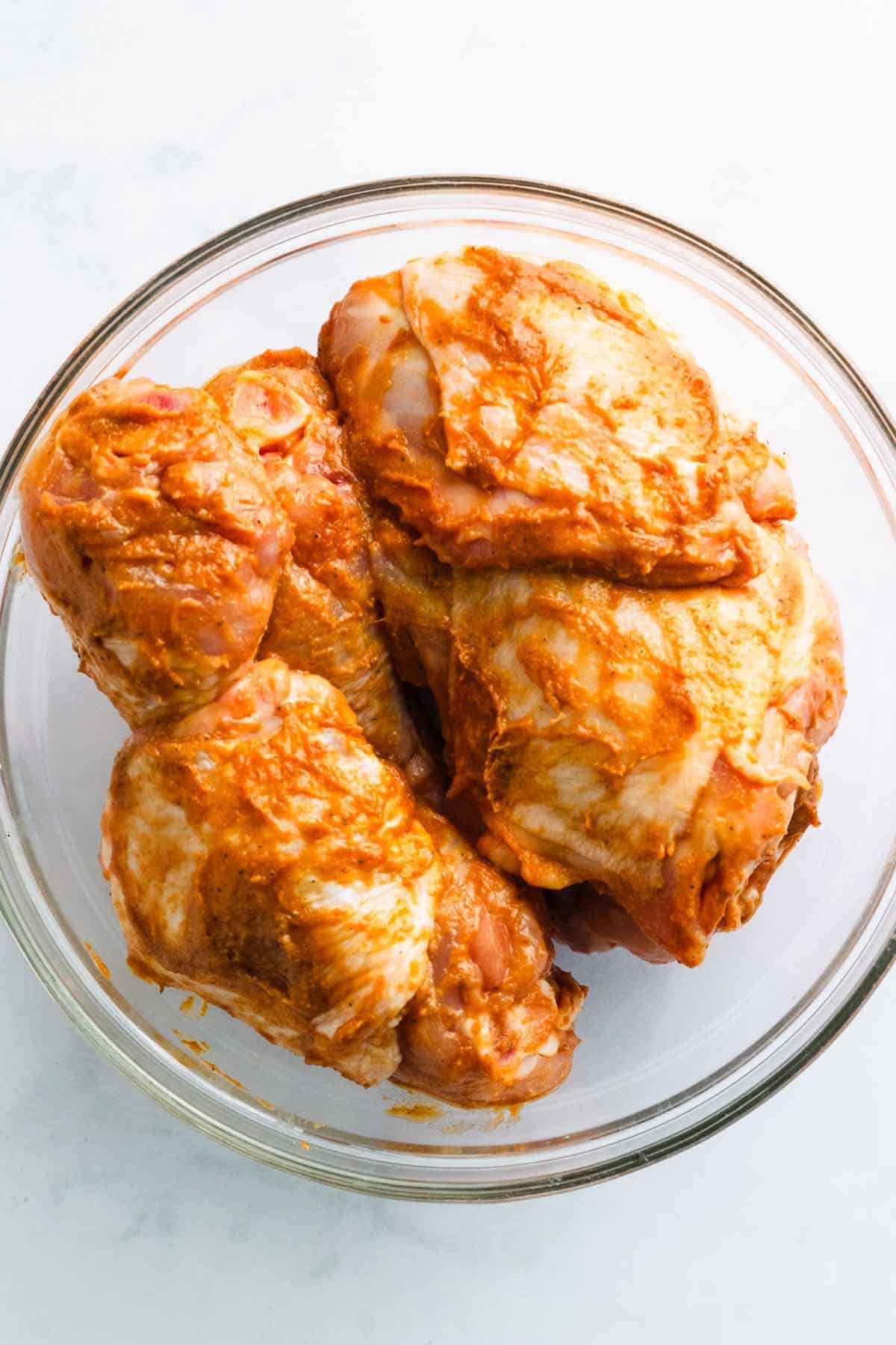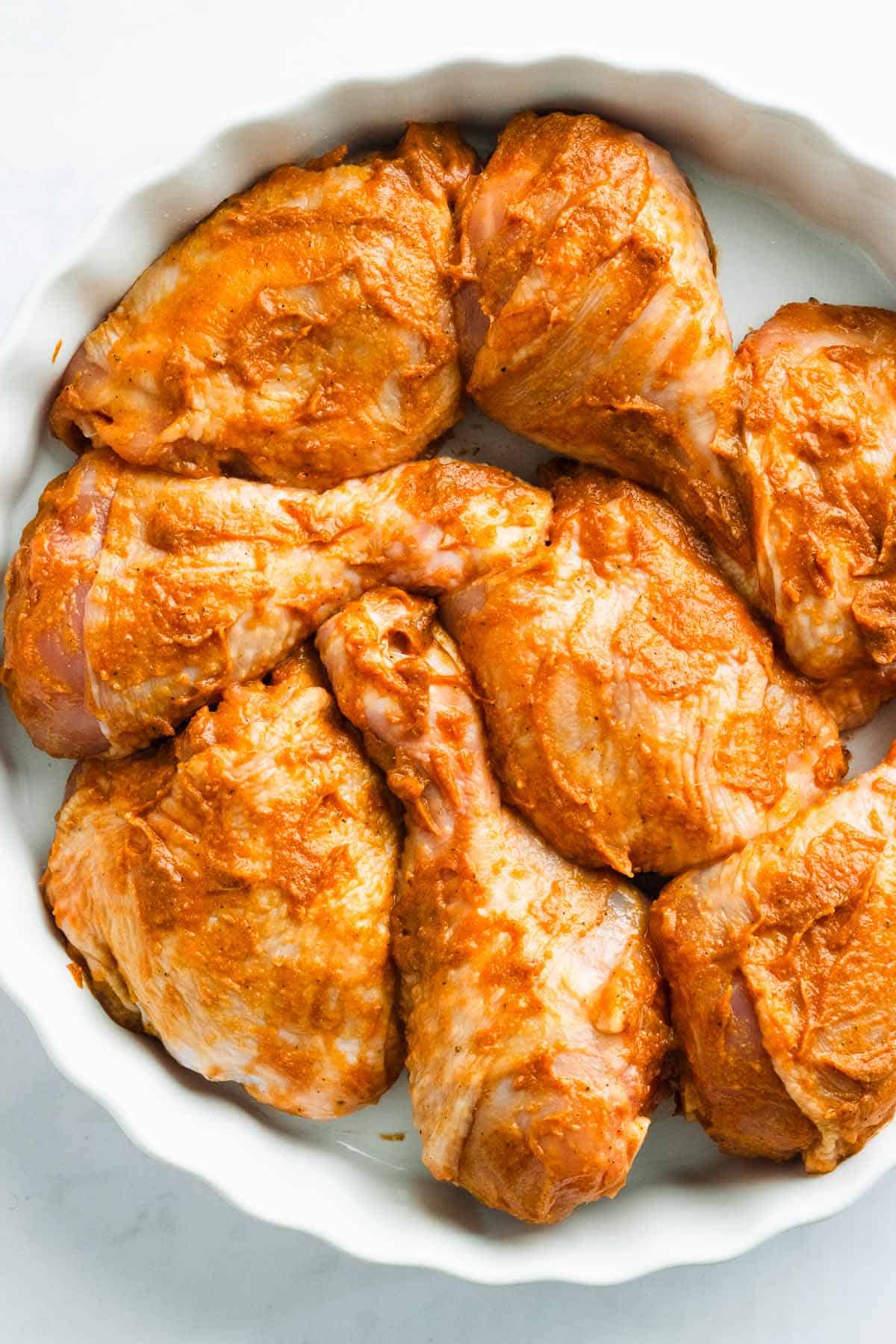 - Chicken thighs & drumsticks - This cut is key for juicy oven baked chicken thighs. Boneless skinless will cook faster but won’t give the same crispy texture.