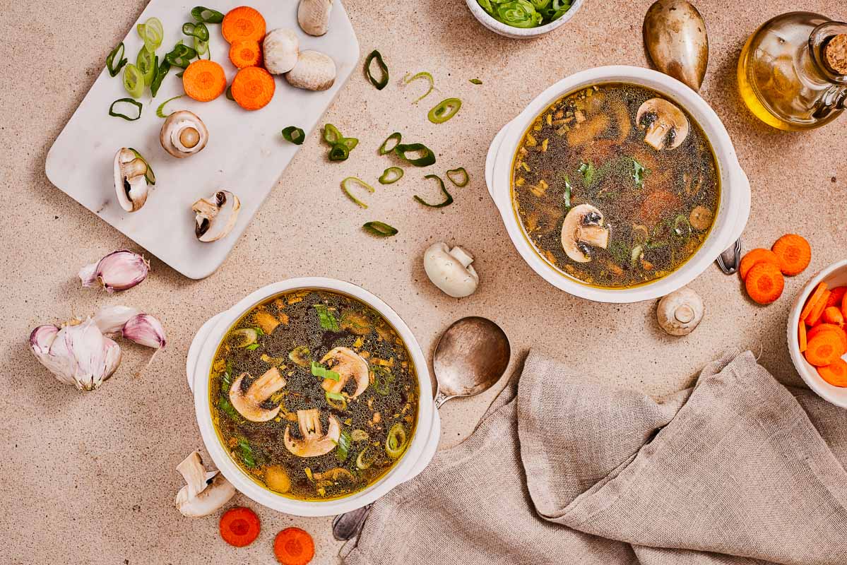 • Vegetables – Onion, carrot, and celery are traditional for hibachi-style clear soup. Slice everything thin so it cooks quickly and keeps the broth clear and light.
