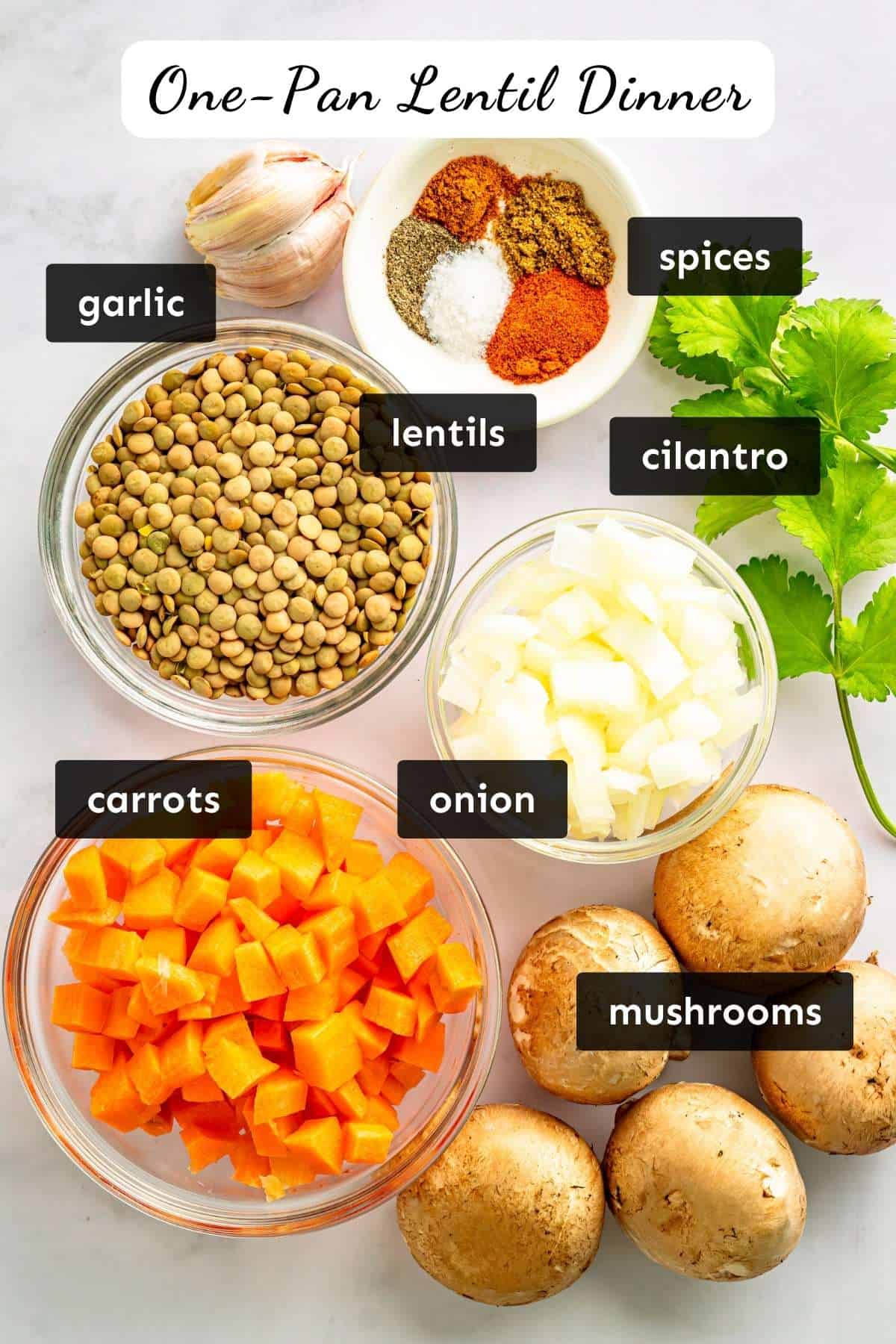 ♥ Lentils bring hearty texture and plant protein. Mushrooms add deep umami flavor that almost feels “meaty.” Warm spices like cumin and smoked paprika give the dish a cozy depth without overpowering the vegetables.