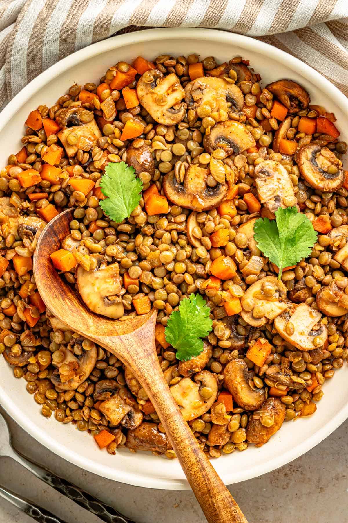 Lentils with mushrooms is a quick, hearty plant based dinner packed with savory flavor.