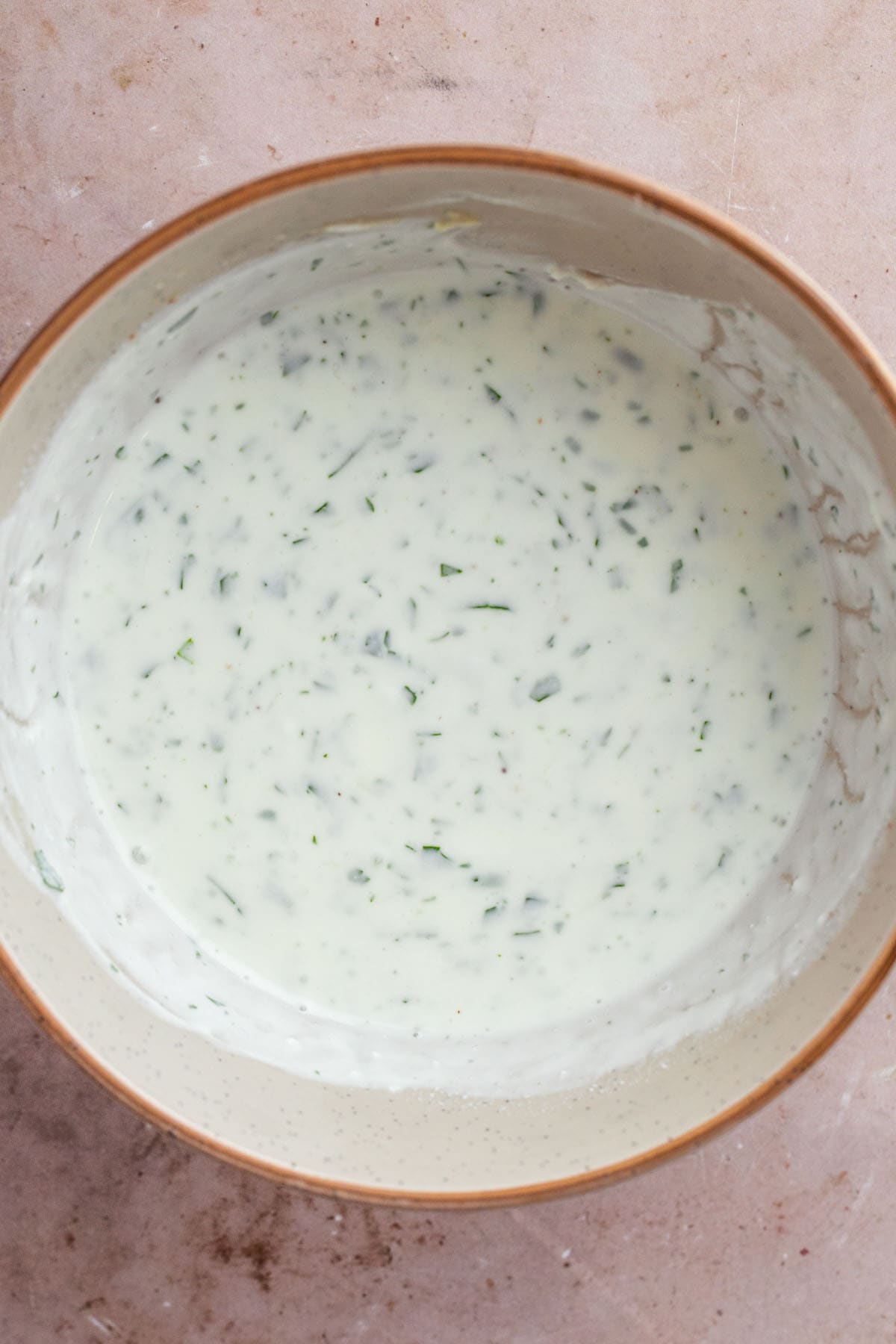 - Make the garlic yogurt sauce – In a small bowl, mix Greek yogurt, minced garlic, lime juice, chopped cilantro, salt, and pepper. Stir until smooth and creamy.