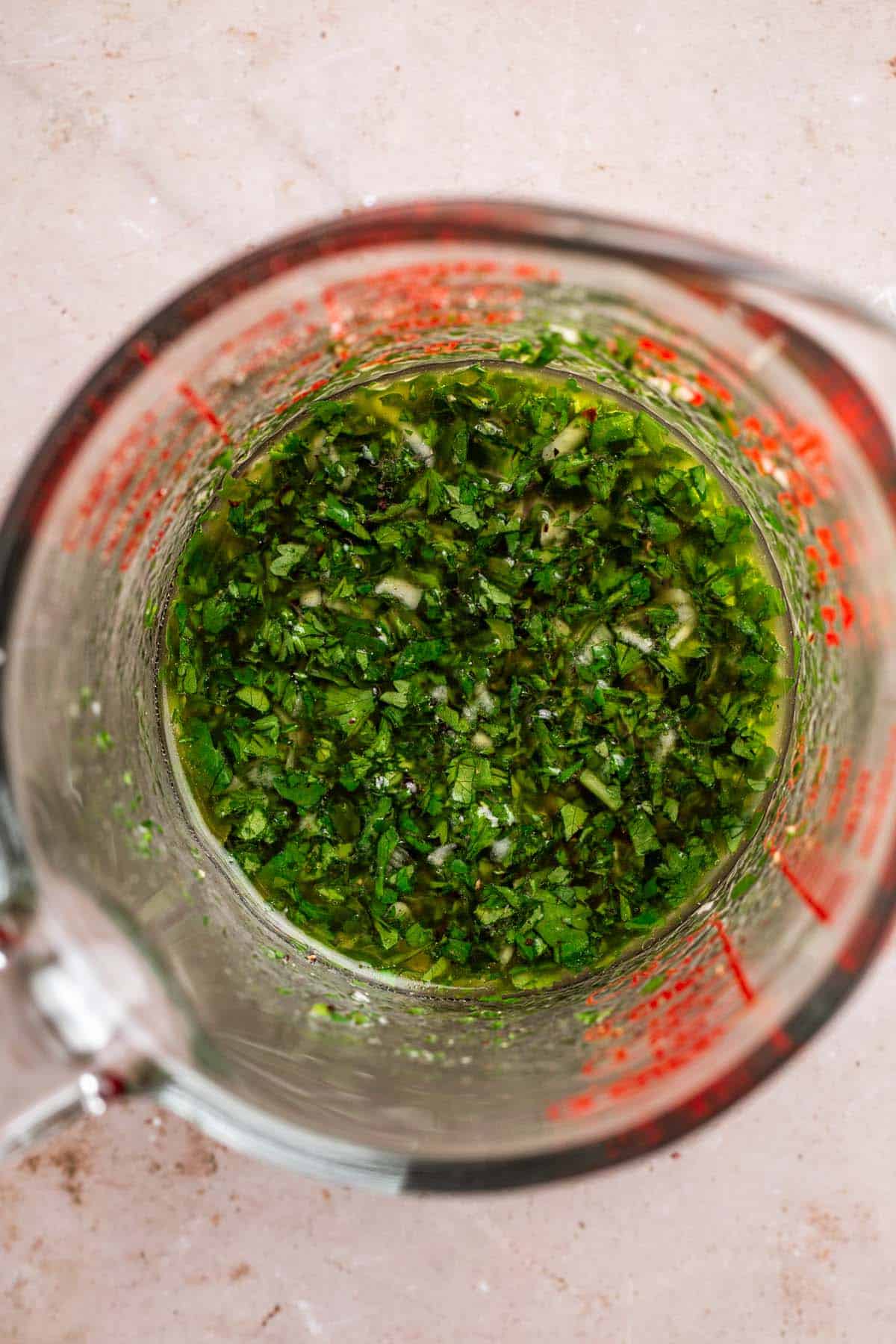 - Make the cilantro-lime vinaigrette – Blend or whisk together lime juice, agave (or honey), cilantro, garlic, salt, pepper, red pepper flakes, and olive oil until emulsified.
