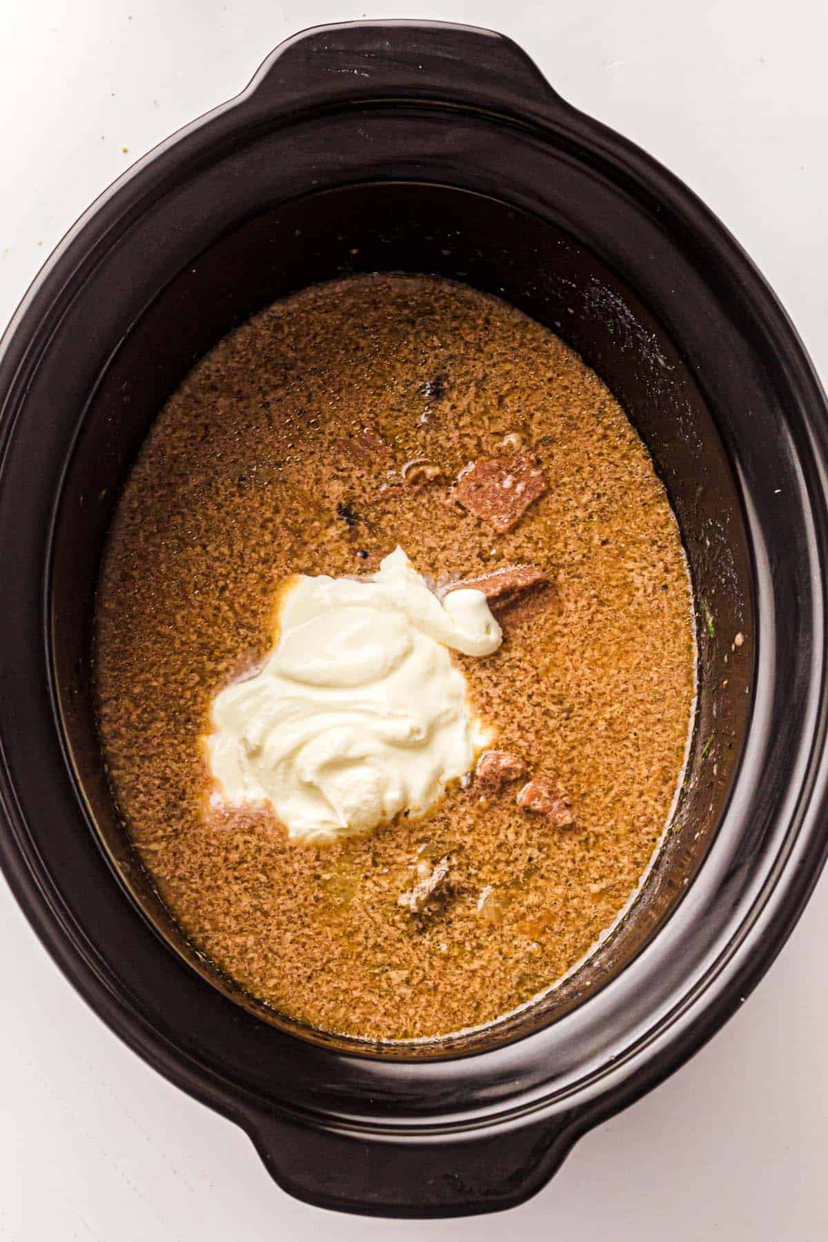 - Add sour cream: Stir in sour cream during the last 15–30 minutes of cooking. Allow it to warm through.